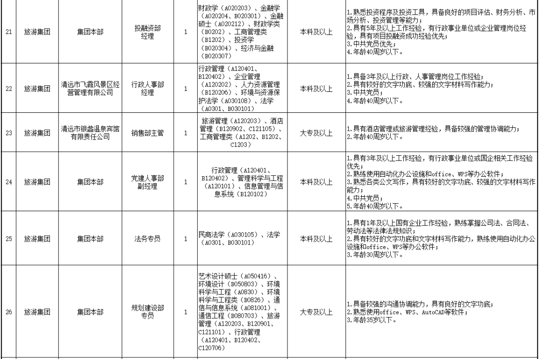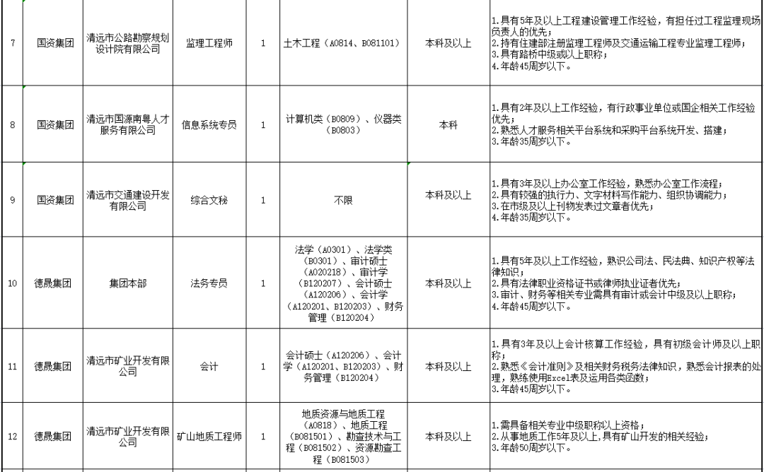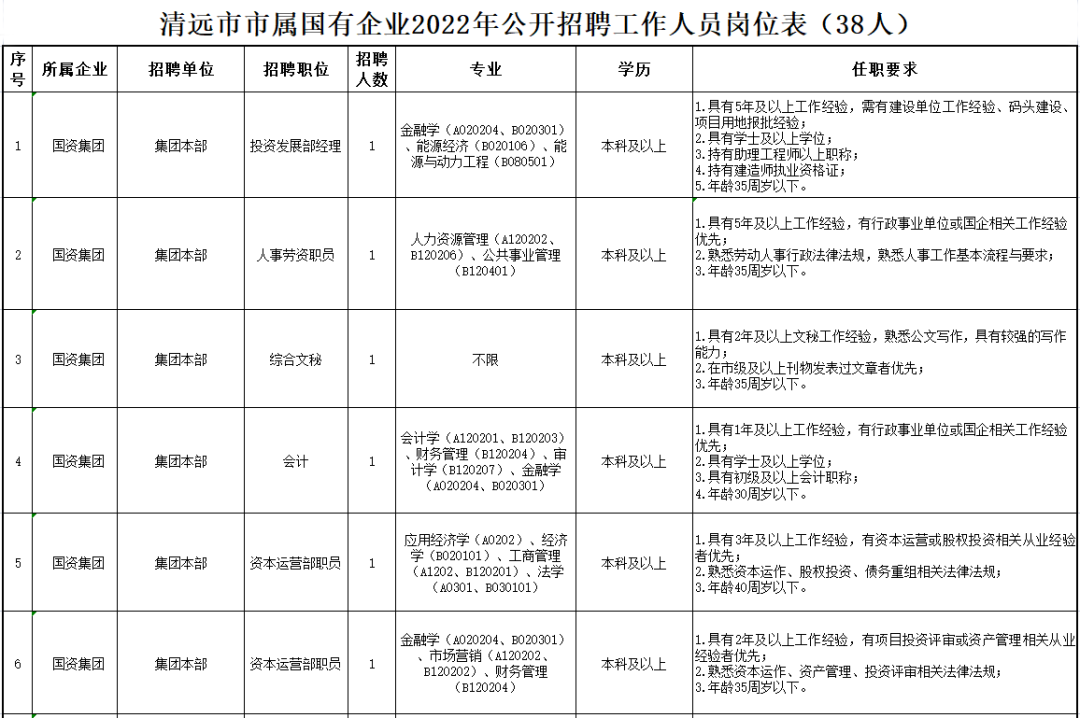 詳見清遠市市屬國有企業(yè)2022年公開招聘工作人員崗位表。