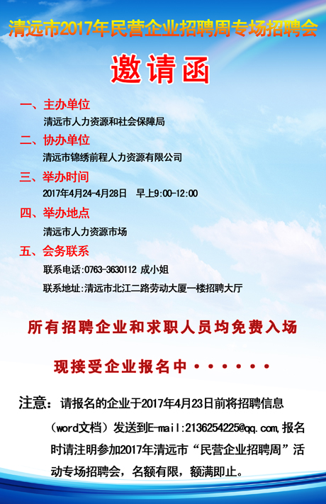 清遠(yuǎn)市2017年“民營(yíng)企業(yè)招聘周”活動(dòng)專(zhuān)場(chǎng)招聘會(huì)