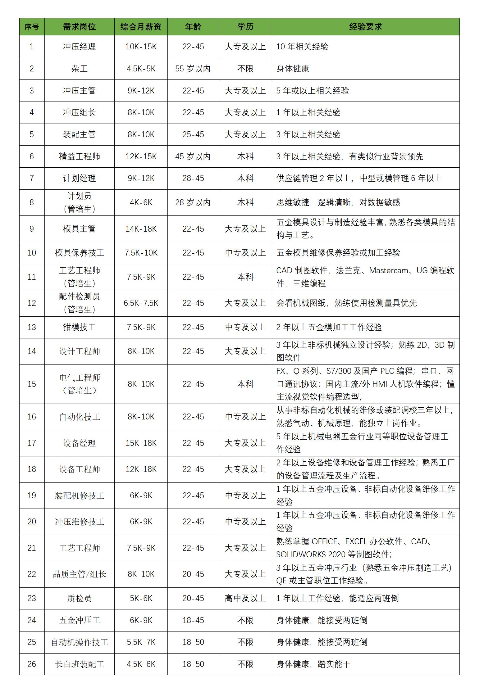 清遠(yuǎn)市星徽精密制造有限公司位于清遠(yuǎn)市龍?zhí)伶?zhèn)銀盞嘉福工業(yè)園。總部是佛山順德北滘的廣東星徽精密制造股份有限公司,股票代碼 300464。公司以鋼珠滑軌、鉸鏈等家居五金配件為主導(dǎo)產(chǎn)品,生產(chǎn)的精密金屬連接件廣泛應(yīng)用于多個(gè)領(lǐng)域。作為家居五金行業(yè)首家上市公司及滑軌、鉸鏈行業(yè)領(lǐng)導(dǎo)者,為員工提供發(fā)揮平臺(tái)和廣闊發(fā)展空間。因業(yè)務(wù)發(fā)展需要,現(xiàn)誠聘以下人員。
