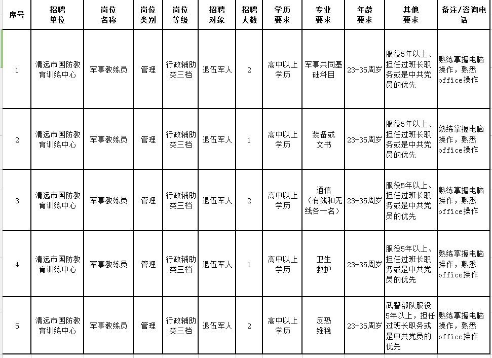 清遠市國防教育訓練中心2020年公開招聘工作人員公告