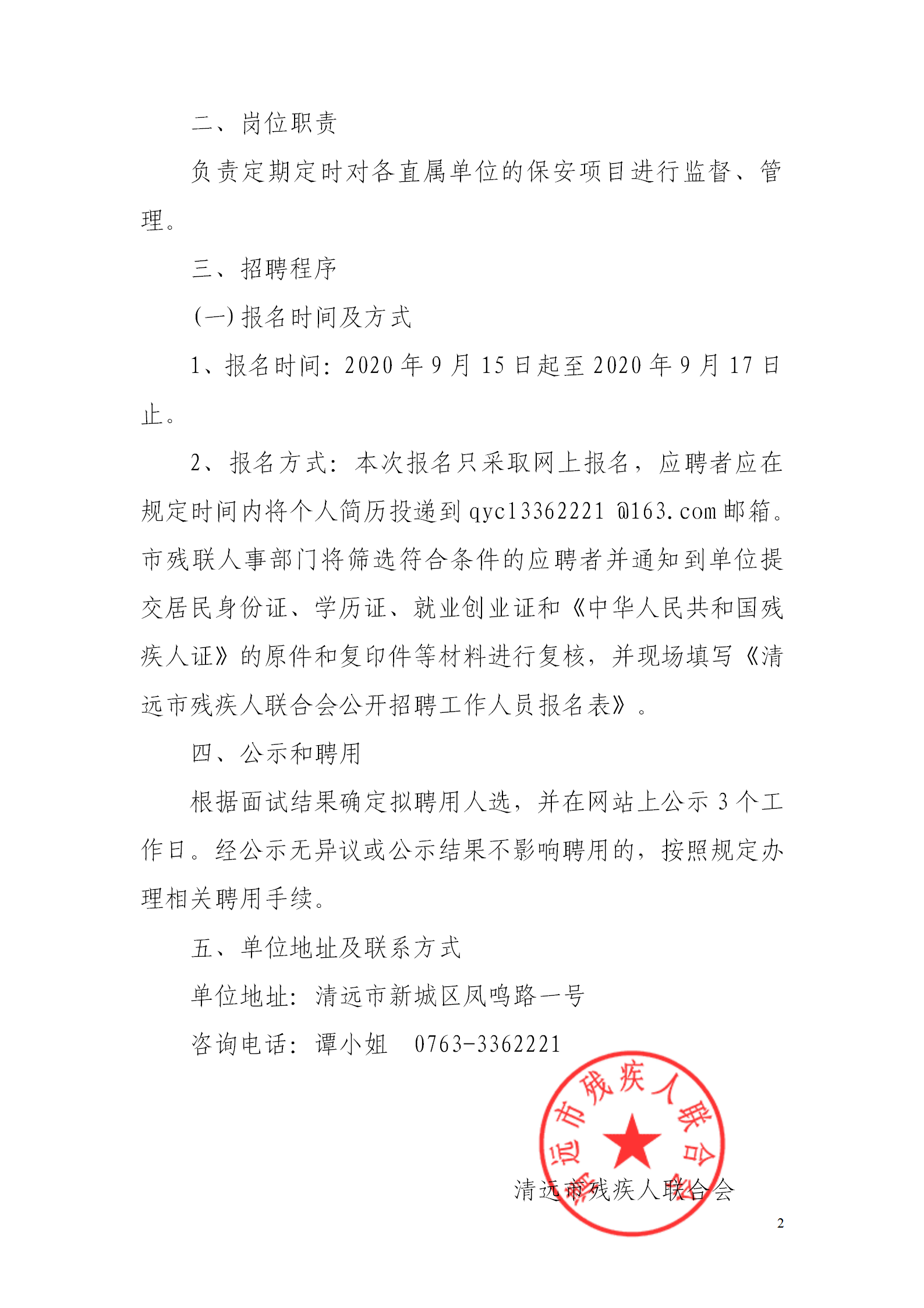清遠(yuǎn)市殘疾人聯(lián)合會招聘工作人員公告