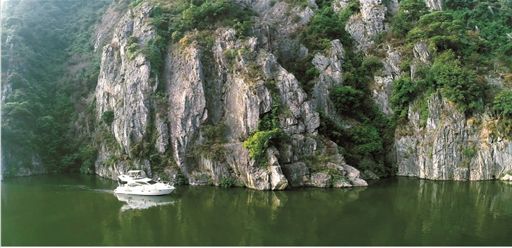 到湞陽峽度假區(qū)旅游,船游北江是首選的一項(xiàng)活動(dòng),千萬不能錯(cuò)過。度假區(qū)內(nèi)有個(gè)湞陽峽游艇俱樂部,可以在這里登上輪船或者快艇,去感受北江的魅力。湞陽峽可以說是北江的精華所在,兩岸奇峰聳立,峭壁險(xiǎn)峻,水勢洶涌,據(jù)說為古代水路交通咽喉,兵家防范要地。漢代趙佗在南越稱王后,就于湞陽峽下游不遠(yuǎn)的江口咀筑萬人城,屯兵扼險(xiǎn),阻止?jié)h兵南下。由此可見這里地勢險(xiǎn)要。湞陽峽以其“秀、奇、險(xiǎn)、幻”而聞名,江峽沿岸還有九道灣、八丈石、盲仔石、犀牛石、將軍石等景觀。湞陽峽還是美麗的庫區(qū),沿岸一邊是古時(shí)嶺南荔枝北上進(jìn)貢的棧道,另一邊新棧橋如今是北江最美的公路—— 銀英公路。
